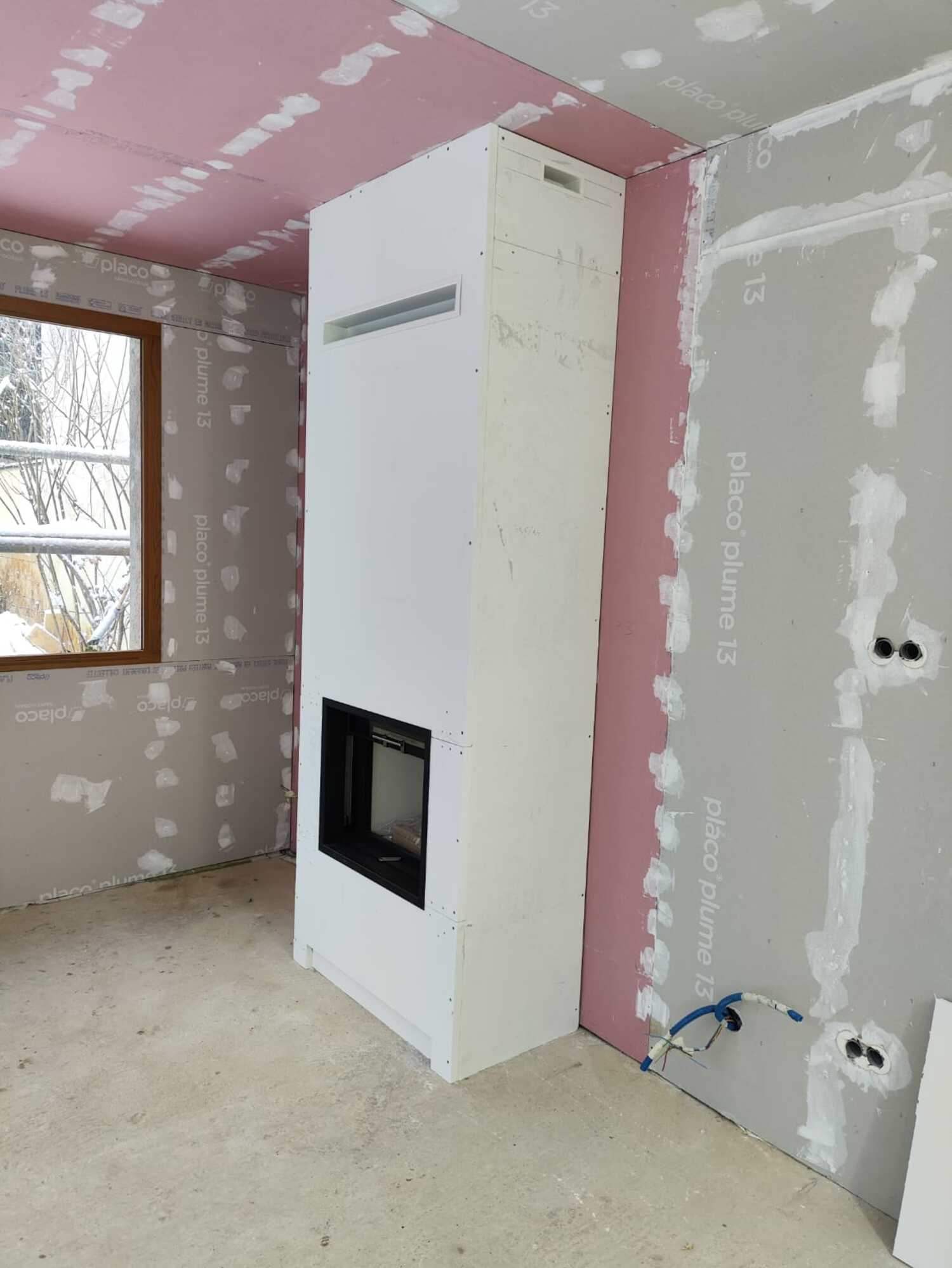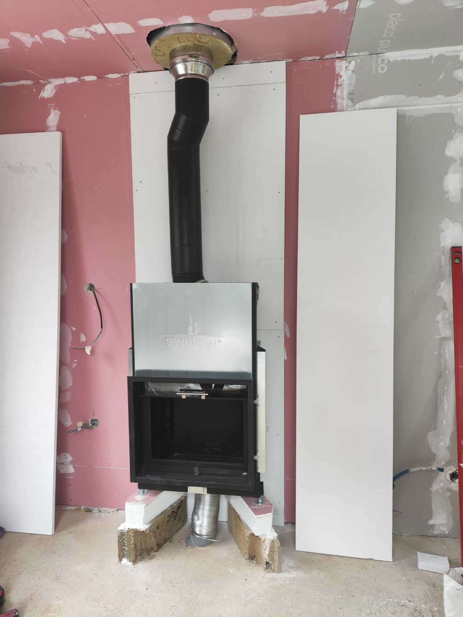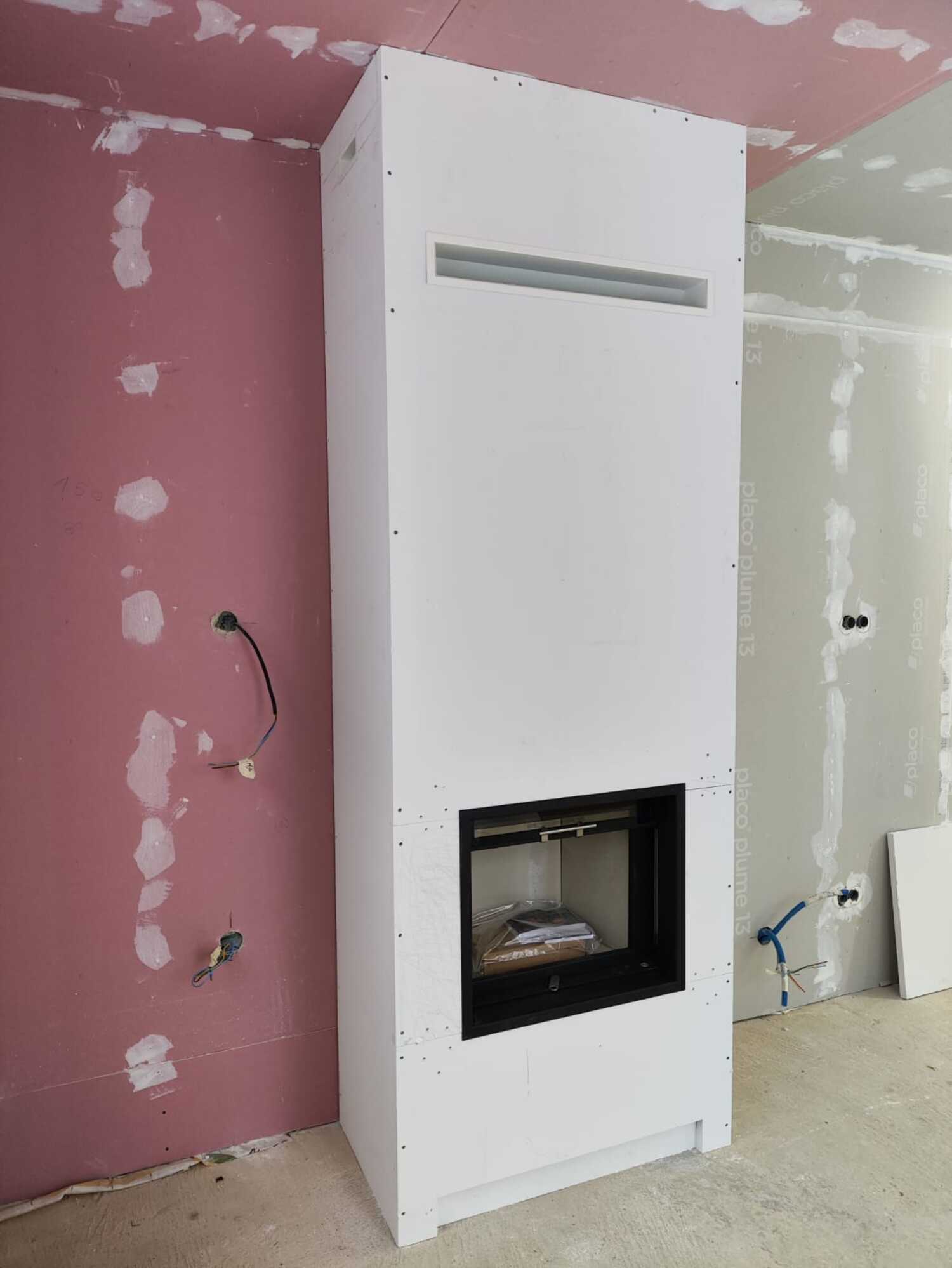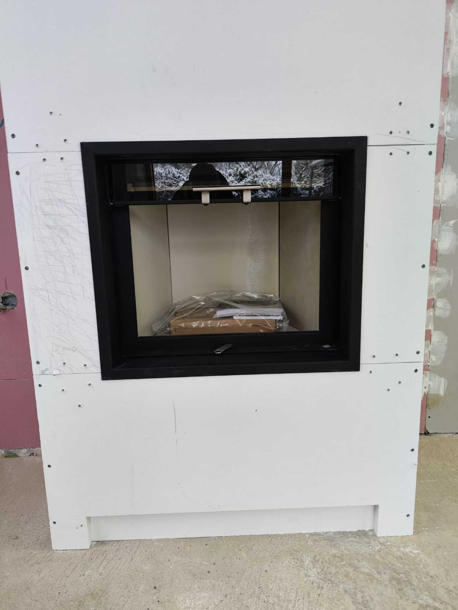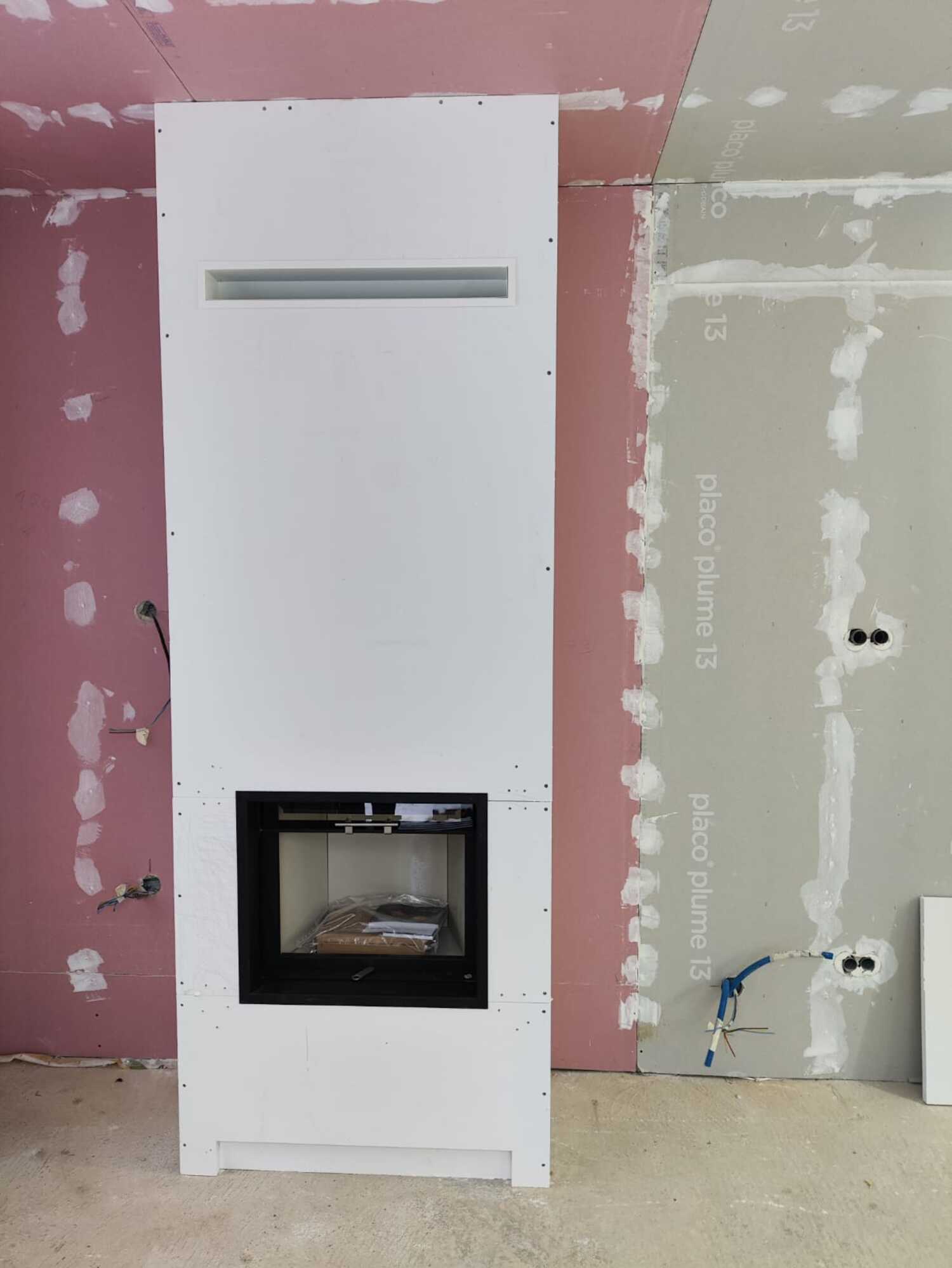 Dans le cadre de cette installation, nous avons réalisé la pose d’un insert à bois avec coffrage sur mesure, parfaitement intégré à l’espace existant.