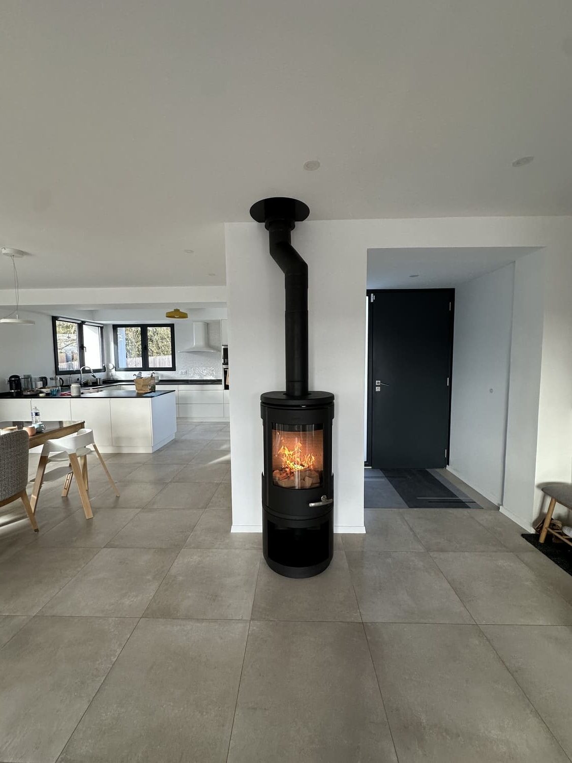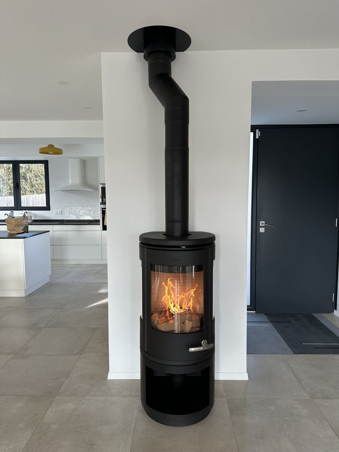 -Réalisation d’une prise d’air frais en provenance du sous-sol ventilé, conformément aux normes de sécurité et aux préconisations techniques pour assurer la bonne combustion du poêle.